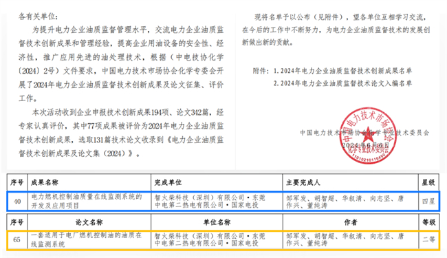 此外,智火柴科技在2024年電力企業(yè)油質監(jiān)督技術創(chuàng)新成果及論-文征集活活動中,以《一套適用于電廠燃機控制油的油質在線監(jiān)測系統(tǒng)》為題的成果文章成功入編《電力企業(yè)油質監(jiān)督技術創(chuàng)新成果及論-文集(2024)》,被評選為二等獎論-文、四-星-級成果獎!