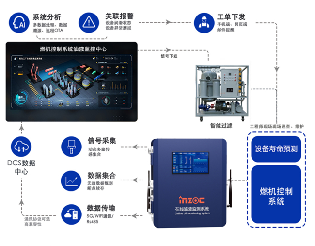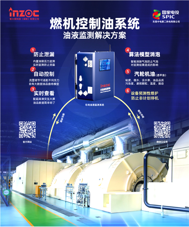 為了解決這一問題,INZOC智火柴憑借深厚的行業(yè)經驗和強大的技術實力,研發(fā)出的這一套適用于電廠燃機控制油的油質在線監(jiān)測系統(tǒng)。