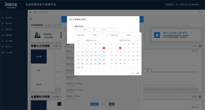 在數(shù)據(jù)分析詳情頁中,用戶可直接向“智能診斷助手”提出問題(如“齒輪箱磨損要點(diǎn)關(guān)注設(shè)備哪些狀態(tài)指標(biāo)?”),系統(tǒng)實(shí)時(shí)解析設(shè)備運(yùn)維專 業(yè)問題并生成結(jié)論。