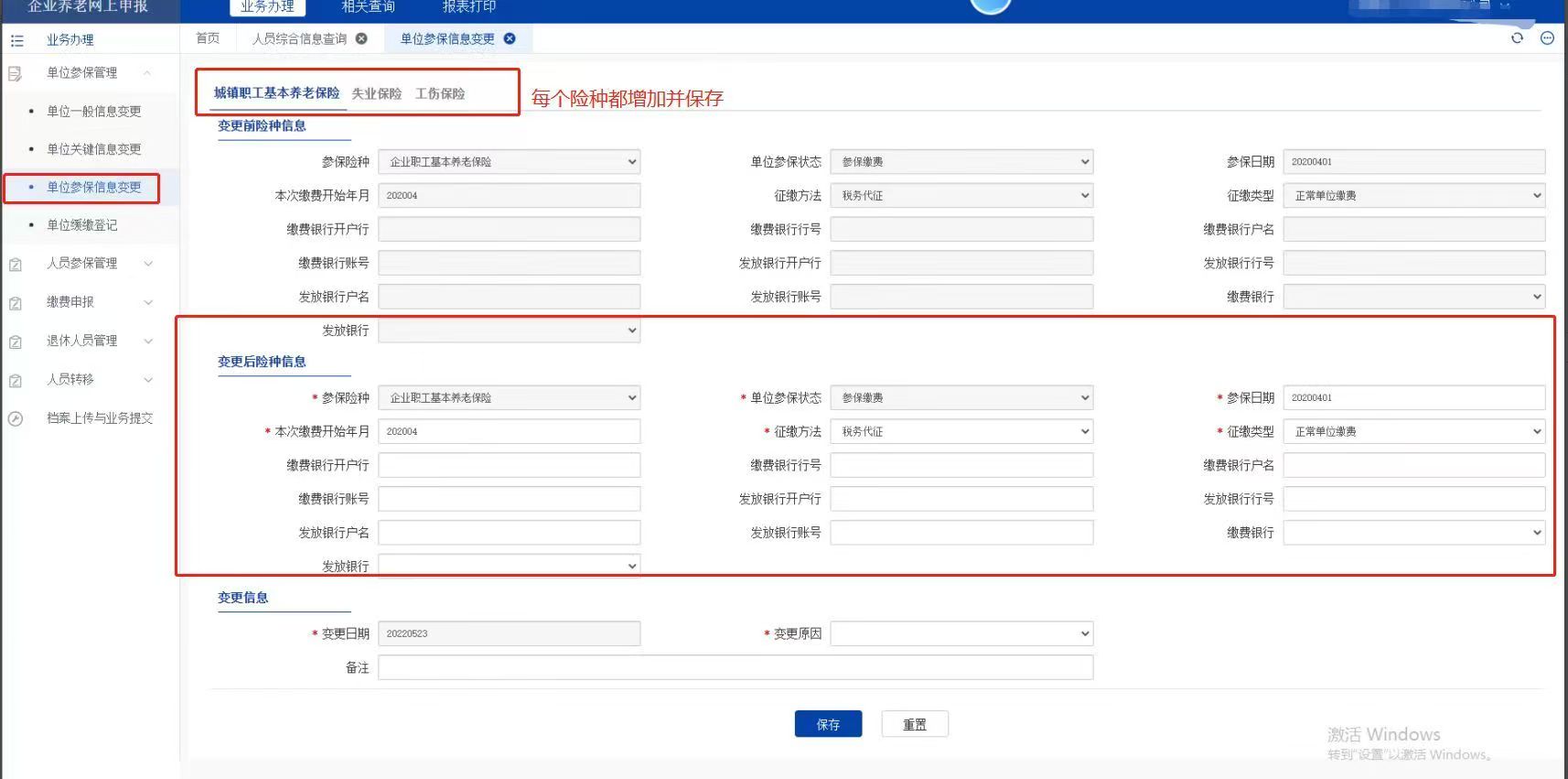參保信息變更:繳費銀行開戶行、繳費銀行行號、繳費銀行戶名、繳費銀行賬號、發(fā)放銀行開戶行、發(fā)放銀行行號、發(fā)放銀行戶名、發(fā)放銀行賬號、繳費銀行、發(fā)放銀行
